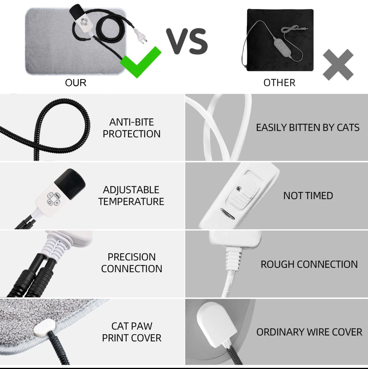 🐱Anti-bite cable for safety: Don't worry, there is no risk of electric shock with this heating mat. This electric pet heating pad with chew-proof cable is safe enough to protect your pet from the danger of electric shock or leakage. Caution: Please keep the cat heating pad flat and do not fold it when using it.